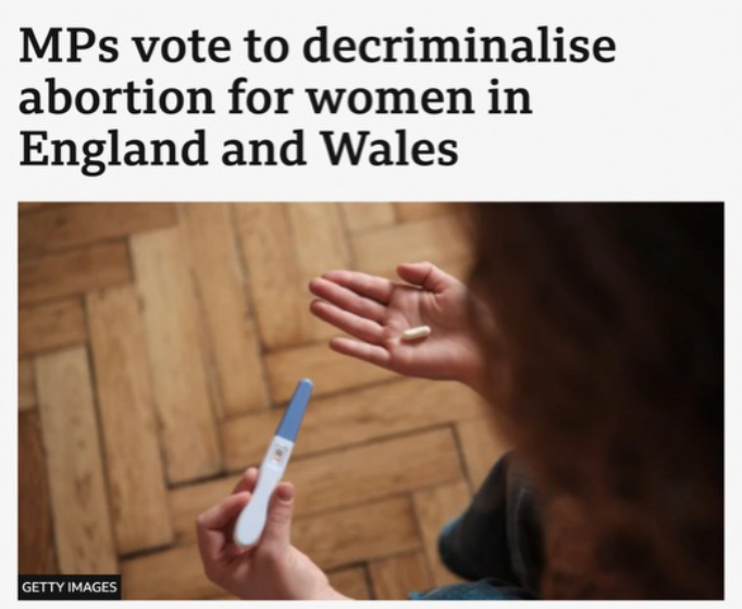 On Tuesday 17 June, MPs voted to decriminalize abortion up to the moment of birth in England and Wales. This means that women cannot be investigated by the police or prosecuted for ending their pregnancies at any stage, whatever the reason. Swig down a cocktail of abortion pills ten minutes before you are due to give birth and the law cannot touch you. The amendment, however, does not decriminalize medical professionals who assist with late-term abortions.